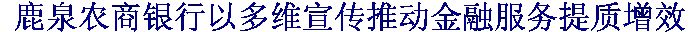 鹿泉农商银行以多维宣传推动金融服务提质增效