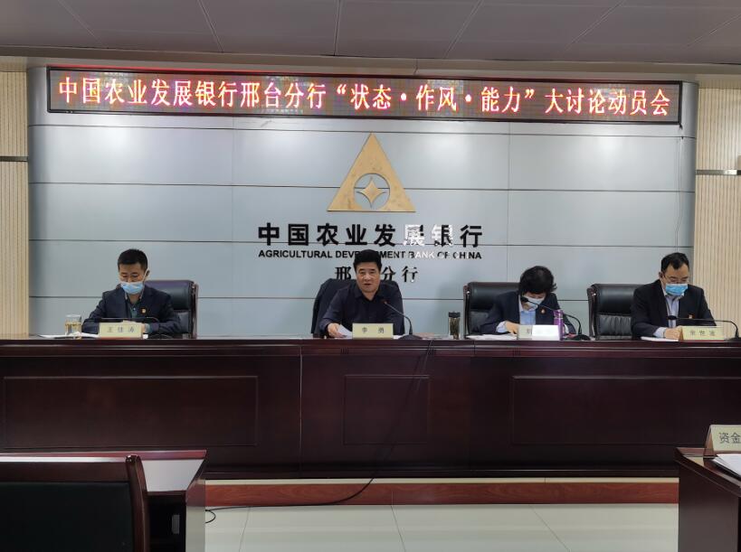 4月27日,农发行邢台分行组织召开“状态·作风·能力”大讨论动员会,开展为期2个多月的“状态·作风·能力”大讨论活动,营造大抓落实、大干实事的浓厚氛围,推动全行高质量发展迈上新台阶。会议由市分行党委副书记、副行长刘旭燕主持,全辖300余名干部职工通过现场和视频方式参加。 会上,市分行党委书记、行长李勇指出,邢台分行新一届党委成立以来,团结带领广大干部职工,攻坚克难,创新实干,各项工作稳中向前、稳中向好。特别是一季度,面对突如其来的新冠疫情和由此带来的深刻变化,全行上下团结一心,主动担当,用拼搏与汗水抒写了高质量发展的新篇章,实现了“首月”“首季”双开门红。实践证明,邢台分行是一支能打胜仗、敢打硬仗的队伍。然而,在业务发展和管理中还存在一些问题亟需解决。此次大讨论是坚持问题导向,深挖“病原体”的现实要求;是完成目标任务,实现高质量发展的实际需要;是党史学习教育,打造邢台特色的关键一环。 会议强调,在全党集中开展党史学习教育的关键时期,开展“状态·作风·能力”大讨论,意义重大。此次大讨论活动,不是与党史学习教育相割裂的,而是党史学习教育活动的重要一环,是市分行党委结合邢台实际打造的“自选动作”。党史学习教育是一项重要的政治任务,必须抓实抓好。通过大讨论提振精神状态,转变工作作风,提升履职能力,实现提神、提标、提质、提速、提效的“五提”目标。此次“状态·作风·能力”大讨论是党史学习教育的生动实践活动,分为“动员学习、剖析不足、整改落实、检查验收、巩固提高”五个阶段。 会上,宣读了《关于中国农业发展银行邢台分行“状态·作风·能力”大讨论活动的实施方案》,详细安排部署了大讨论的各项工作。同时,宣读了《关于表彰中国农业发展银行邢台分行首季开门红和疫情防控“党员先锋队”“党员标兵”“青年突击队”的通报》,促使干部职工向身边榜样学习,进一步激发干事创业热情。 邢台分行通过“状态·作风·能力”大讨论,旨在抖擞精神,提振状态,改进作风,狠抓落实,主动“加码”,提升能力,以更加昂扬的斗志投身到服务乡村振兴战略中去,以更加优异的成绩向党的百年华诞献礼!